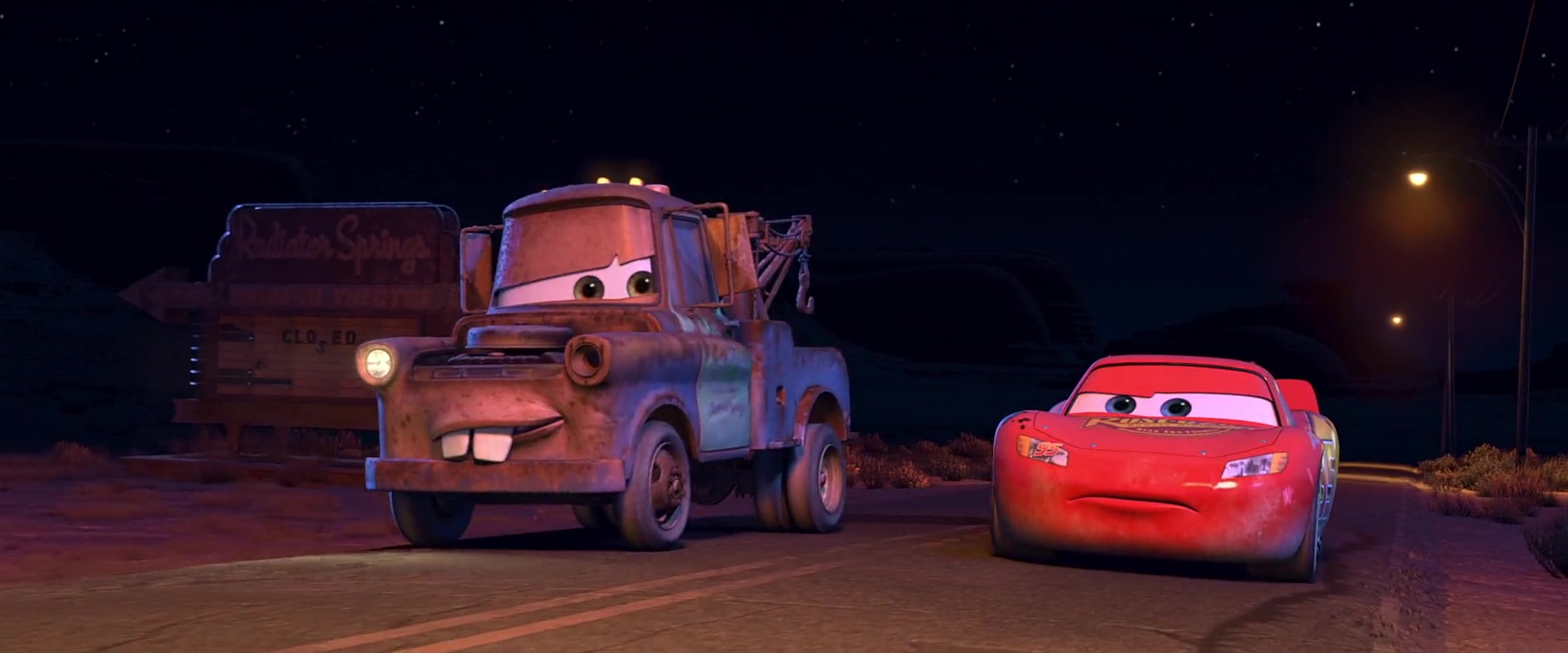 Synopsis: Ambitious race car Lightning McQueen finds himself stranded in a forgotten desert town on his way to a big race. Through quirky residents and small town charm he discovers friendship matters more than fame and speed.